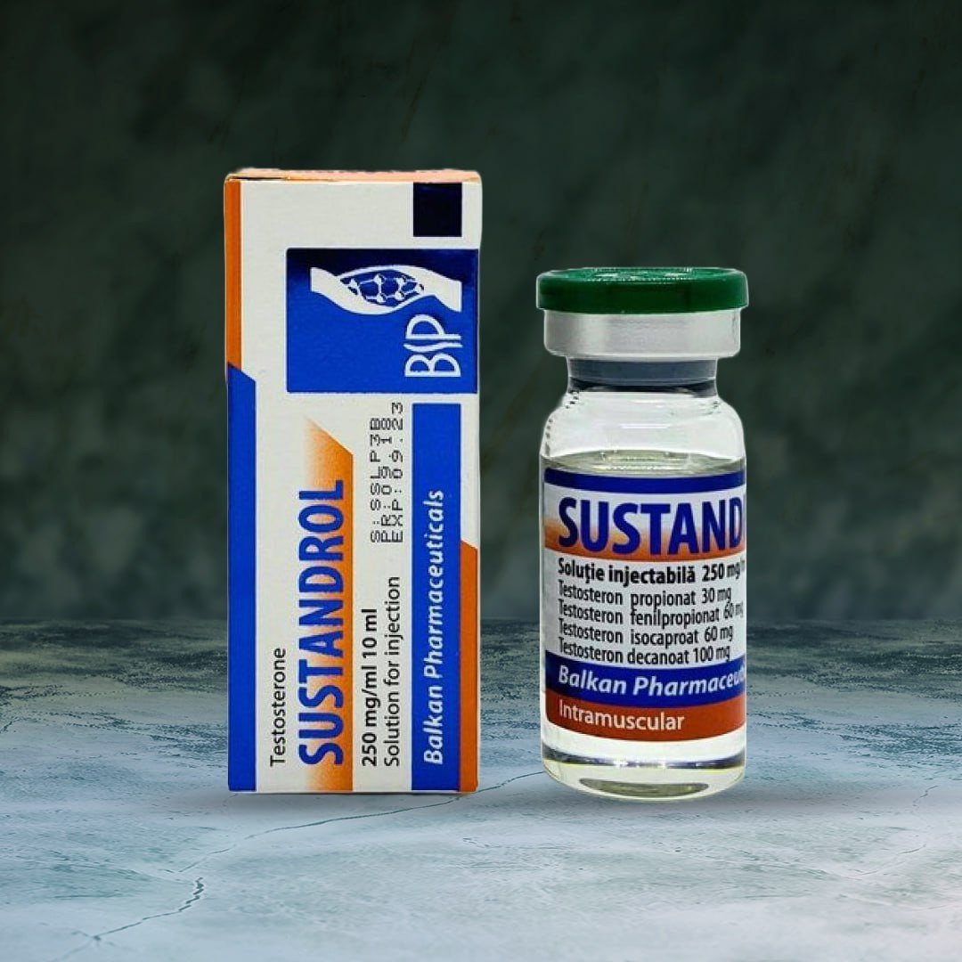 SUSTANDROL – это композитный тестостерон, который состоит из четырех эфиров: 30мг про-пионата, 60мг фенилпропионата, 60мг изокапронатаи 100мг деканоата. Такое сочетание длин-ных и коротких эфиров позволяет быстро ощутить действие препарат и пролонгировать его дей-ствие, что в совокупности нивелирует стероидные ямы.