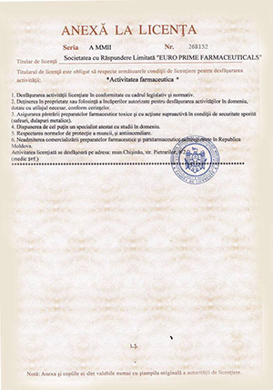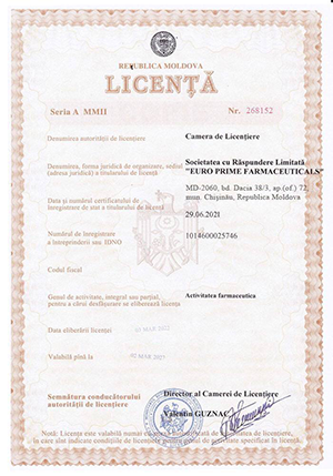 OOO «Кишинёвский эндокринный завод» имеют сертификаты качества национального стандарта GMP.